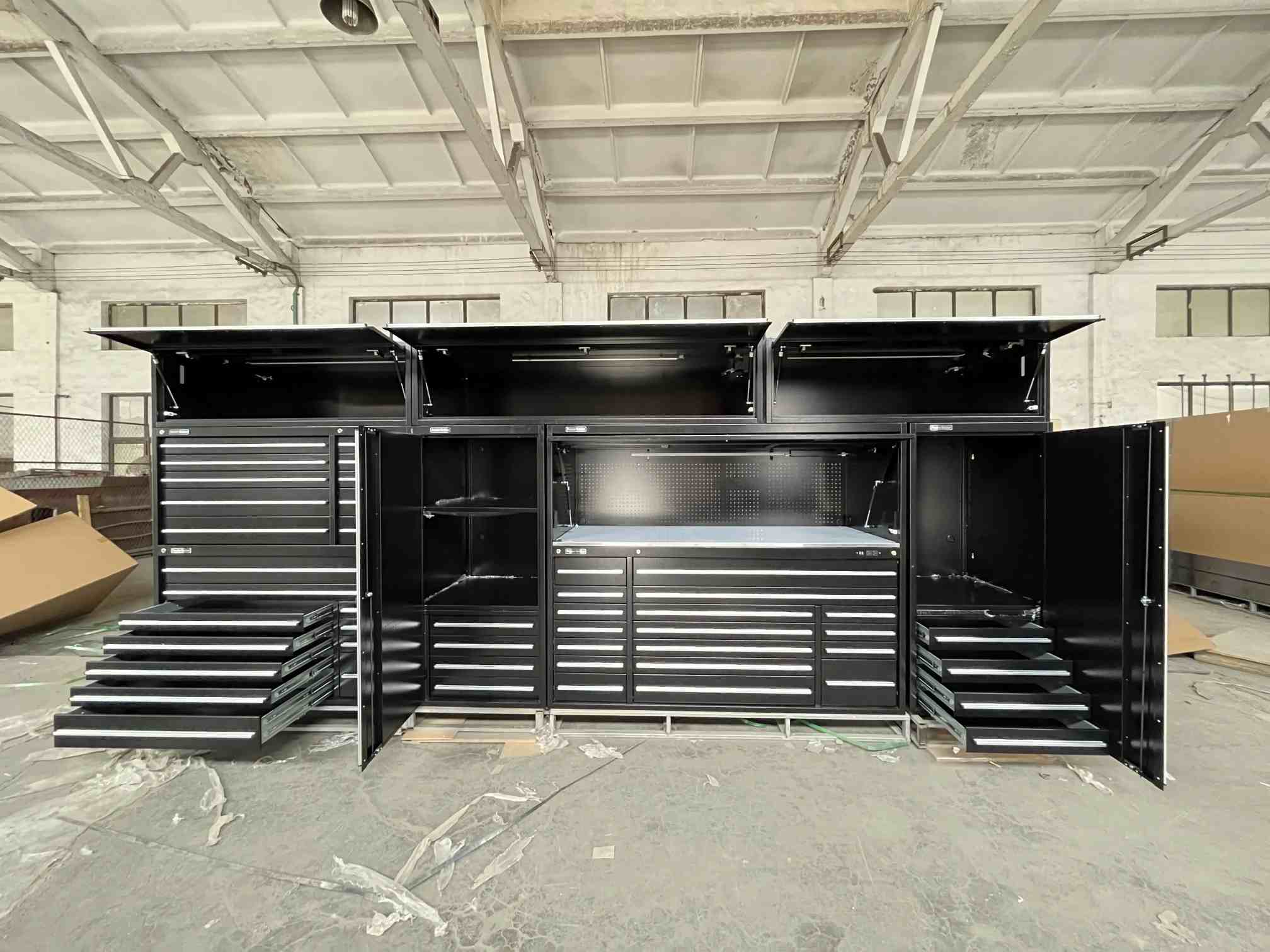 O gabinete da ferramenta de garagem do módulo é um sistema de armazenamento de ferramentas composto por vários módulos independentes. Cada módulo possui funções específicas e espaços de armazenamento, como módulos de gaveta para armazenar pequenas ferramentas e módulos de porta do gabinete para abrigar grandes ferramentas ou equipamentos. Os usuários podem combinar livremente esses módulos com base em suas necessidades reais para criar um sistema de armazenamento de ferramentas personalizado. Comparado aos armários de ferramentas integrados tradicionais, oferece maior flexibilidade e adaptabilidade, permitindo ajustes de acordo com as mudanças na quantidade e nos tipos de ferramentas, alcançando verdadeiramente a personalização personalizada.