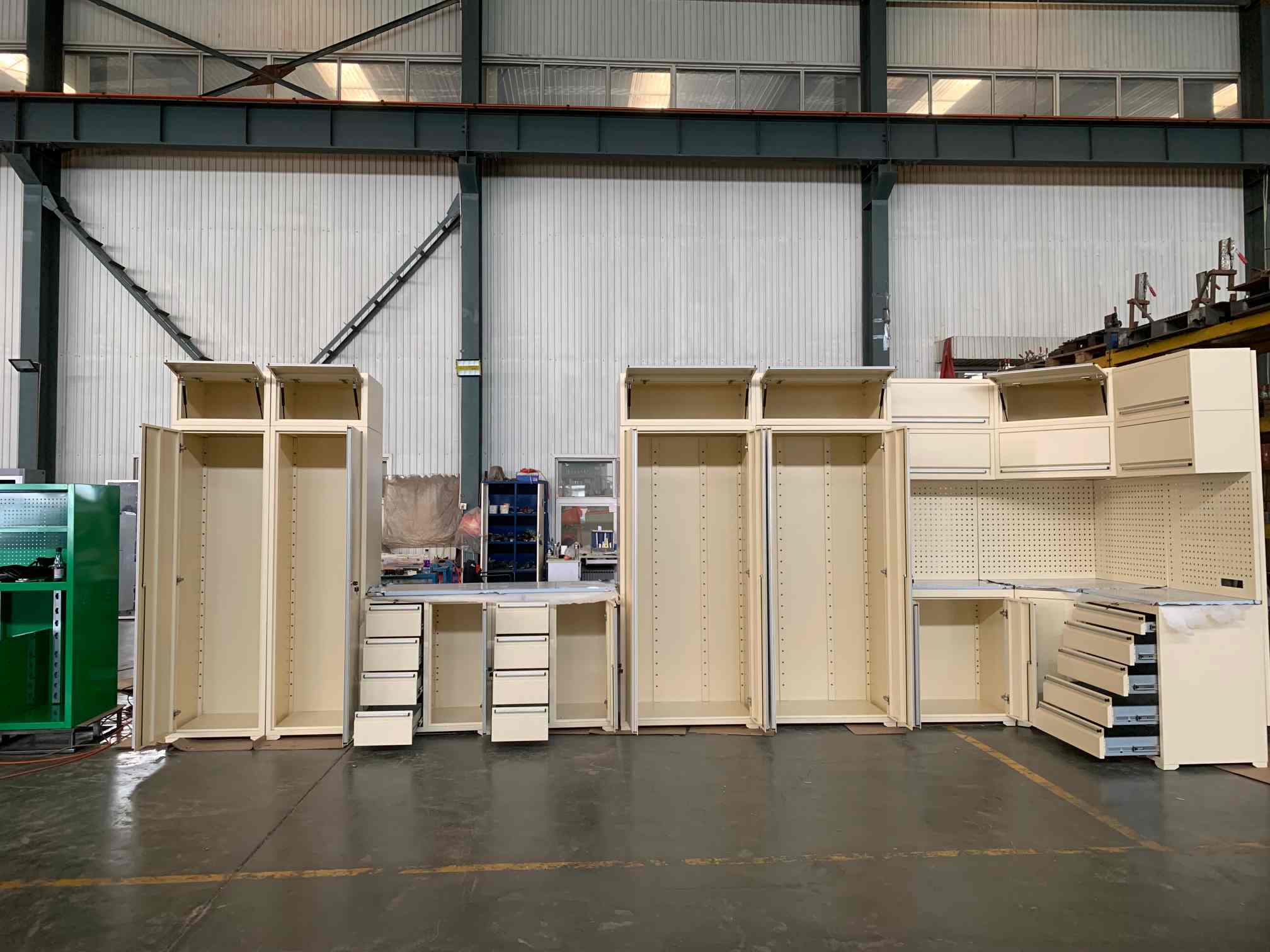NtO gabinete de garagem de Workbench é projetado para armazenamento seguro de itens pesados-incluindo ferramentas, peças mecânicas e vários itens essenciais da família-eliminando preocupações sobre os limites de carga de carga de slides de gavetas. Graças ao seu projeto estrutural robusto (particularmente os sistemas de slides de gavetas otimizados com recursos aprimorados de peso), esse gabinete oferece desempenho confiável, mesmo sob cargas pesadas. Como resultado, oCianoO armário de garagem de Workbench se destaca como uma solução de armazenamento altamente prática, organizando efetivamente os espaços de garagem desordenados, garantindo durabilidade a longo prazo para uso pesado.